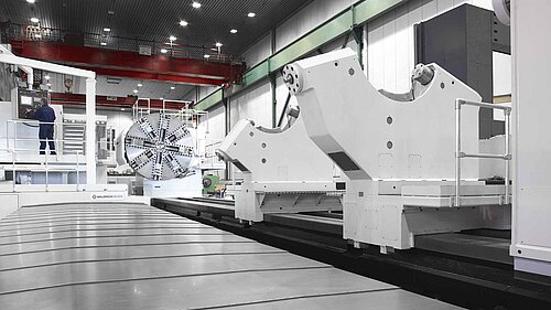 Die Horizontaldrehmaschinen der ProfiTurn H-Reihe von WaldrichSiegen sind die idealen Werkzeugmaschinen für die präzise und effiziente Bearbeitung von rotationssymmetrischen Werkstücken mit bis zu 7 Meter Durchmesser, 30 Meter Länge und 500 Tonnen Gewicht. Wir bieten die ProfiTurn H auch als Dreh-Fräs-Maschine mit integriertem Fräsaggregat und als Kurbelwellendrehmaschine an.