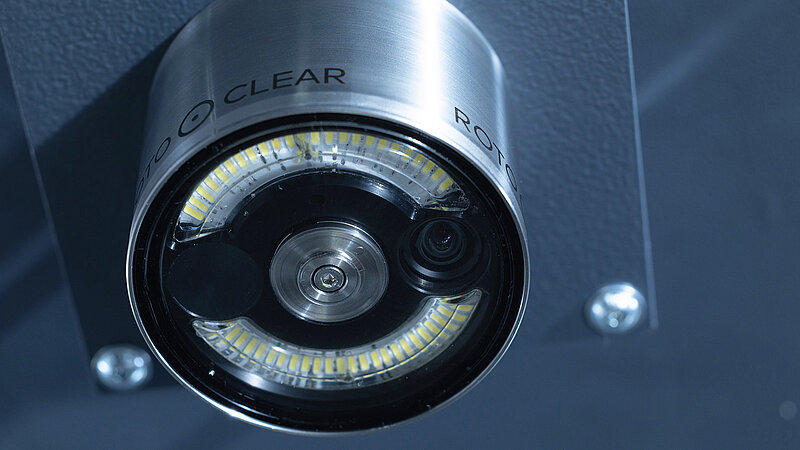 - Eine am Maschinensupport und in jedem relevanten Arbeitsbereich angebrachte Kamera (Zoom, Schwenk, ausgedreht) kann von der Bedienstation aus eingestellt werden. Das Kamerabild wird über einen separaten Monitor ausgegeben.