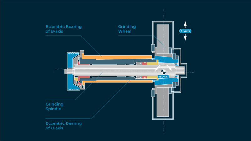 - Exzentrische Schleifachsenlagerung zur optimalen Bearbeitung von komplexen Geometrien
