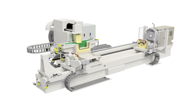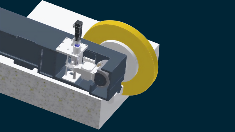 - Die in den Schleifsupport integrierte B-Achse ist der Garant für enorme Präzision bei höchsten Schnittkräften und Abtragsleistungen entlang der Walzengeometrie.
